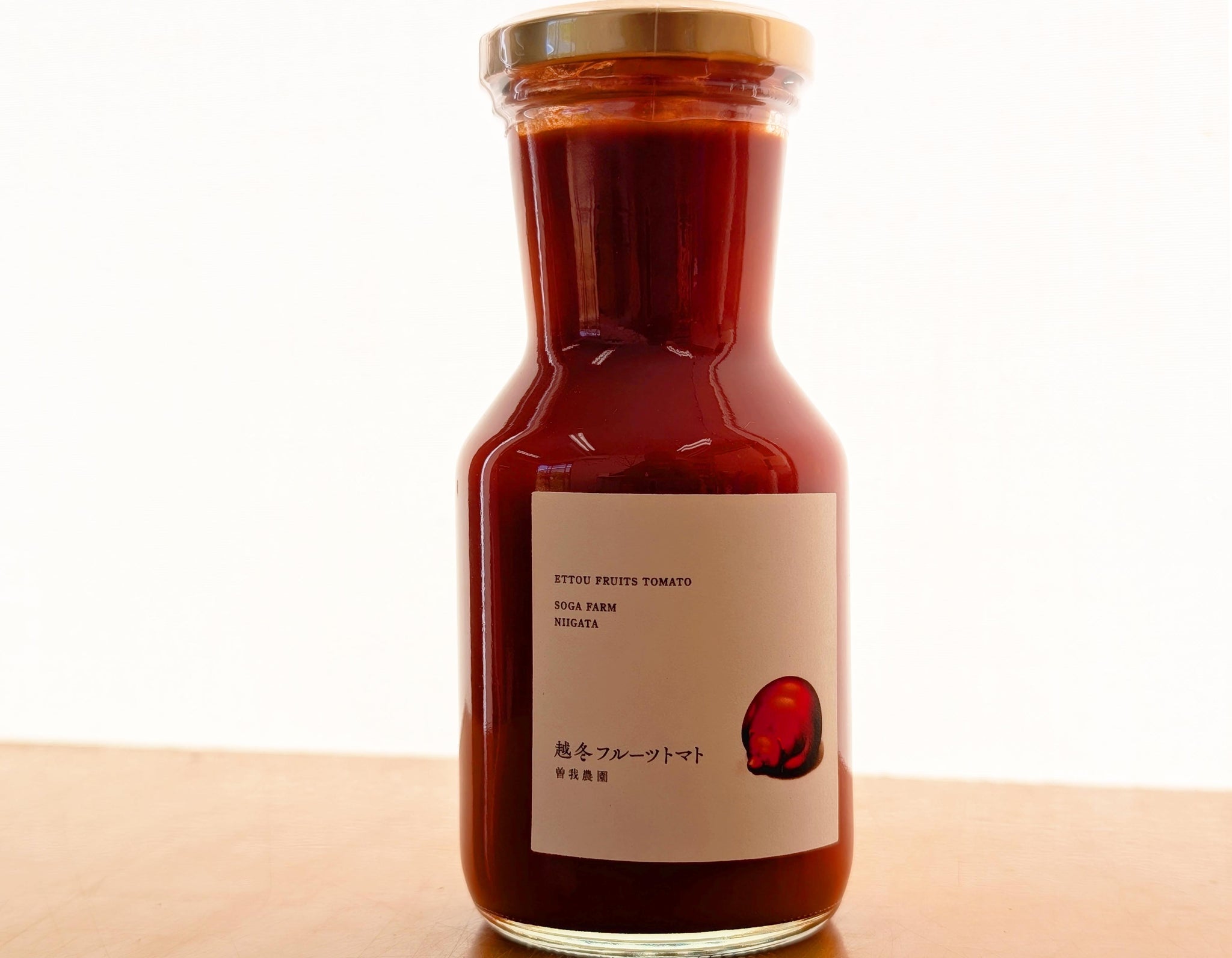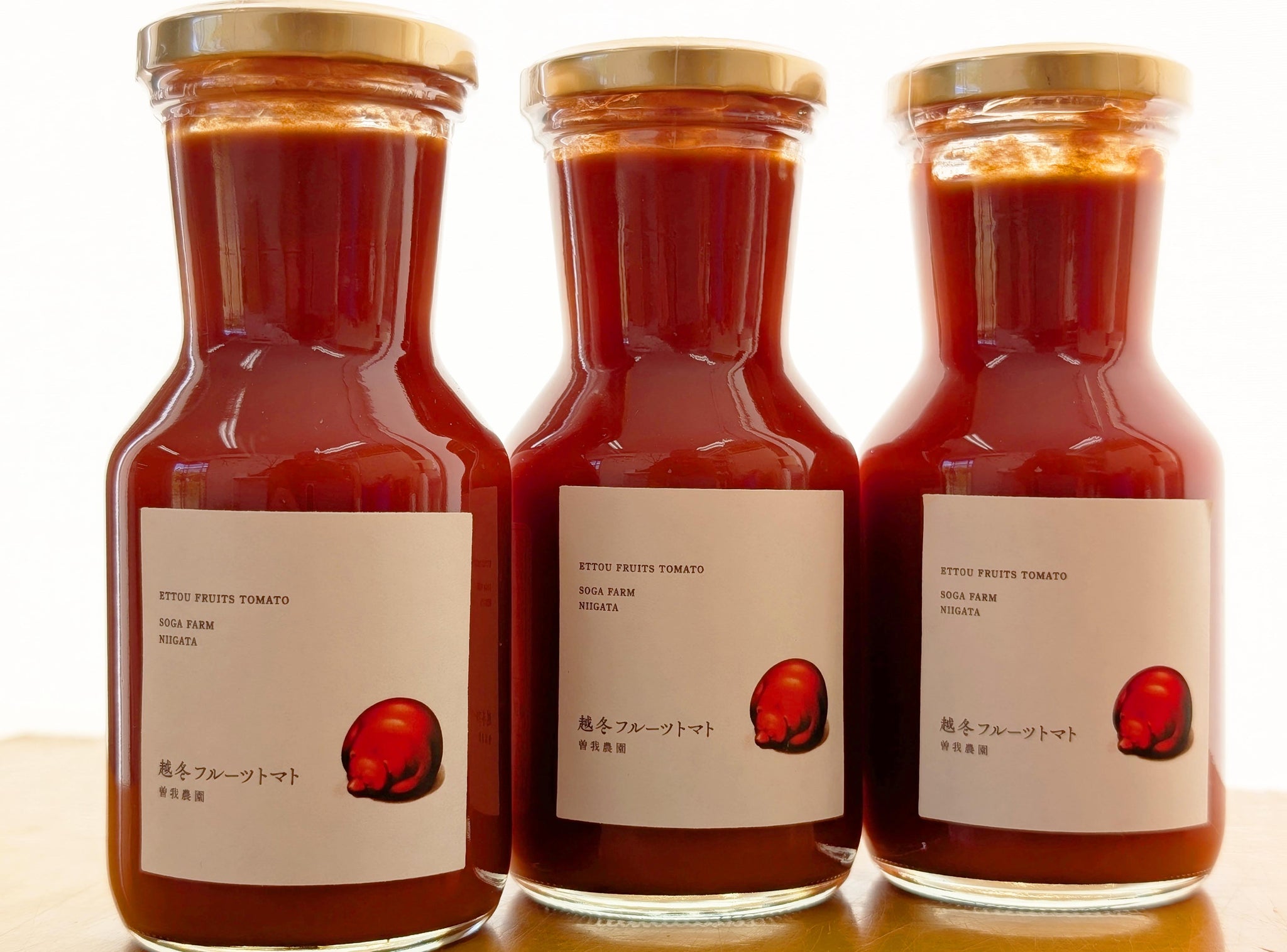 雪国・新潟の気候風土によって育まれた「越冬トマト」。この特別なフルーツトマトとともに、その甘みと旨みを濃縮させた、贅沢なトマトジュースとケチャップソースを販売しています。フルーツトマト専門農家・SOGA FARM(曽我農園)が自信をもってお届けする、幸せな余韻が広がる商品です。